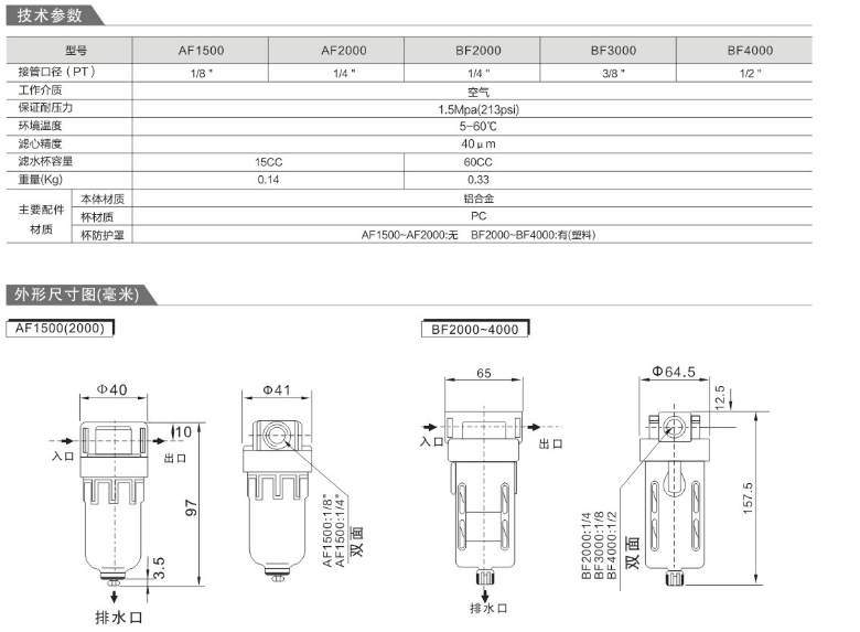 亞德客型AF、BF系列空氣過濾器