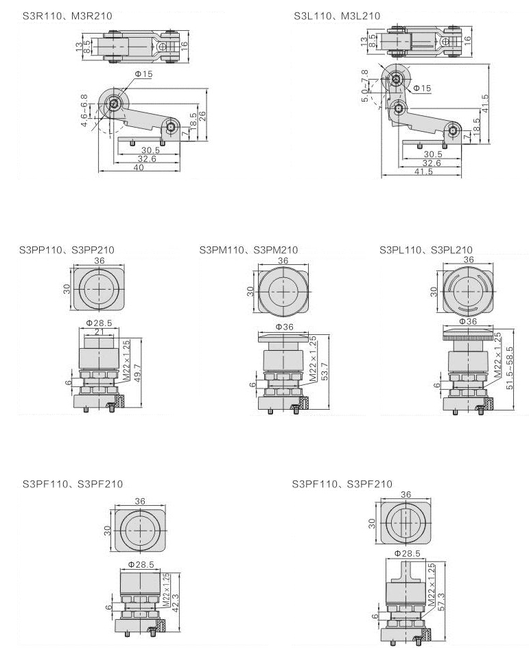 S3 series Red Green Yellow Black Mushroom Pushbutton Mechanical Operated Valve