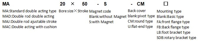 Standard stroke(mm) for MA stainless steel mini cylinder