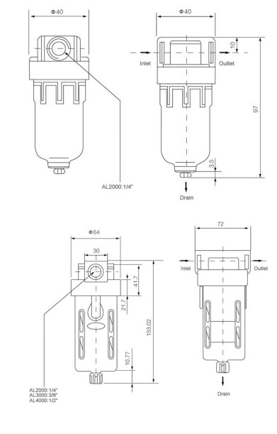 .Airtac type AL2000 BL2000 BL3000 BL4000 series water oil air lubricator is designed with delicate and compact, which is convenient for installation and application.