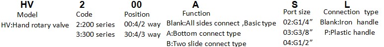 HV Series Hand Lever 4 Ports 3 Position Control Mechanical Valve Port size G1/4" G3/8" G1/2"