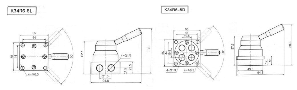 .Three position four way Hand Switching K34R6/K34R8 reversing valve hand rotary valve is controlled by human or machine, to switch the direction of air flow.