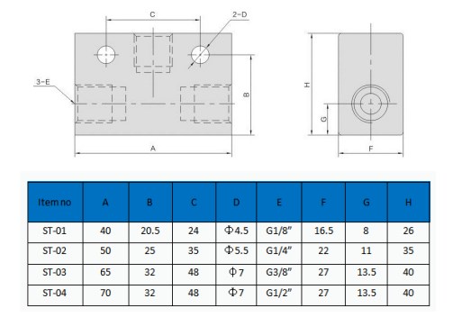 One-way Non-return Pneumatic ST series Shuttle Valve ST-01 ST-02 ST-03 ST-04