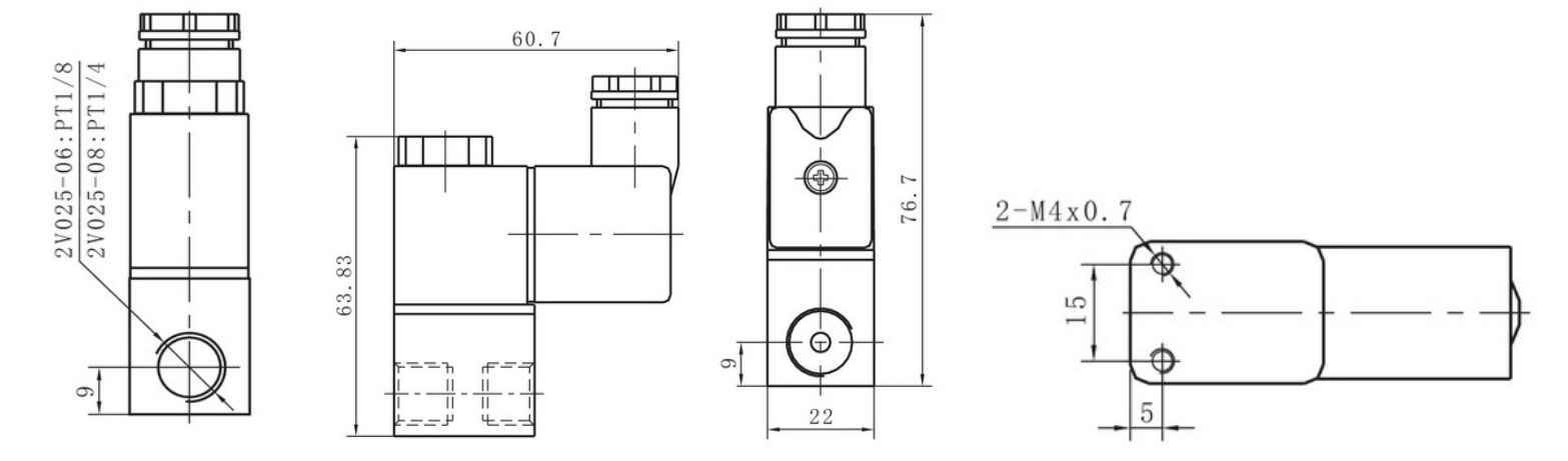 2V025-06/08 2 Way Normally Closed Pneumatic Electric Solenoid Air Valve with multi stations