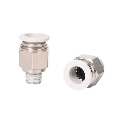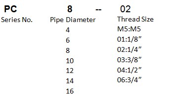 PC series Pneumatic fittings are equipped with a gasket, Stainless steel grab-ring to grip nylon or PU tubing.