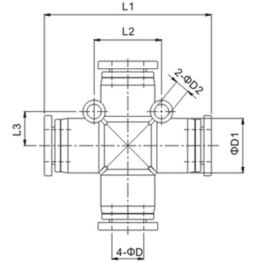.PZA series 4 port plastic quick connect fittings is designed for Polyurethane or Nylon tubing.