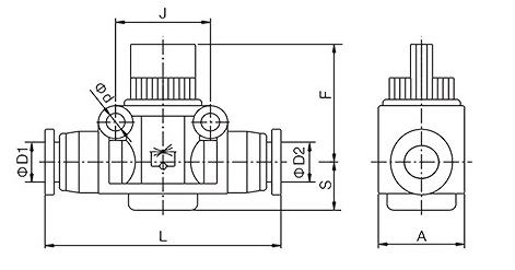.HVFF hand valve fitting is used for controlling on and off air pressure of pneumatic devices. This joints fittins has no function of regulating air flow.