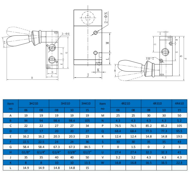 .1/2” G thread 3H410-15 Two way three position Pneumatic manual return hand control valve is manual operation, smooth actuation, and exact and reliable orientation;