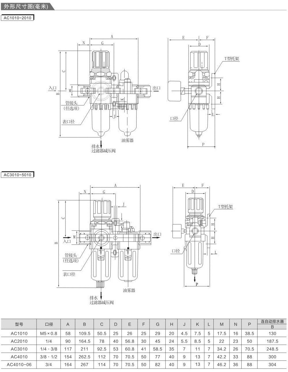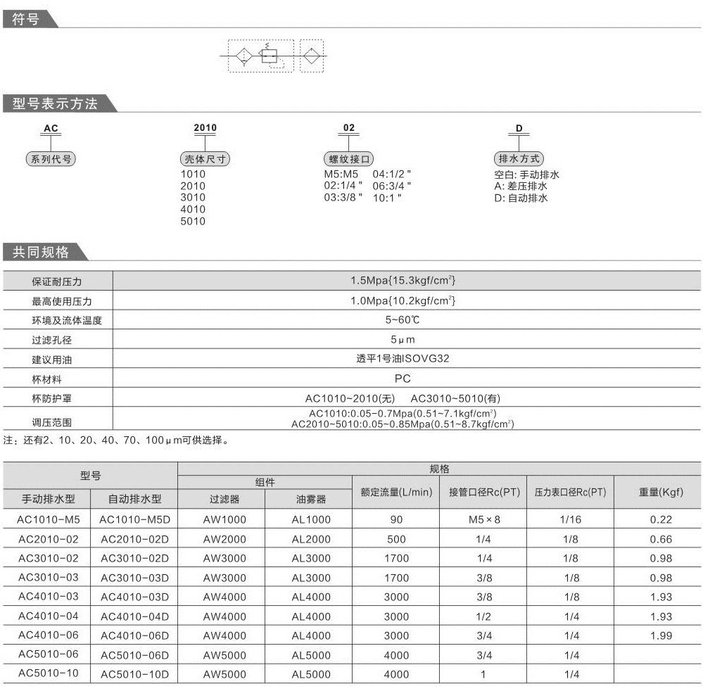 SMC型AC二聯件自動排水空氣過濾調壓氣源處理器AC2010-02 AC3010-03 AC4010-06 AC5010-10