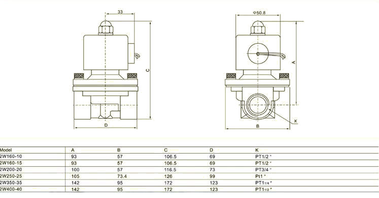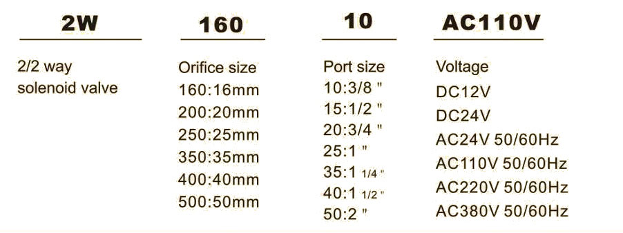 2W series 24V DC/220V AC normally closed direct acting brass water solenoid valve
